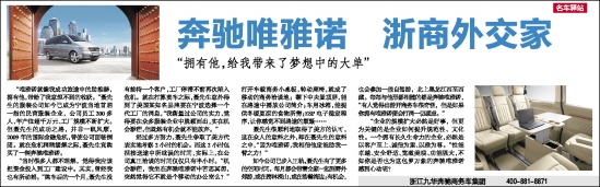 “唯雅诺就像我成功旅途中的助推器,拥有他,带给了我意想不到的收获。”聂先生的服装公司如今已成为宁波当地首屈一指的民营服装企业,公司员工200多人、年产值超千万元、工厂规模不断扩大。但聂先生的成功之路,并非一帆风顺,2009年的国际金融危机,曾使公司面临倒闭。就在危机稍稍缓解之际,聂先生竟购买了一辆奔驰唯雅诺。