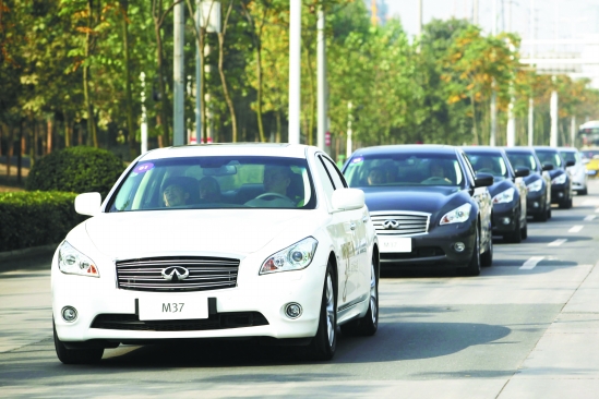 | 当代豪华品牌英菲尼迪11月30日在成都举行了“感,前所未感”英菲尼迪M全国试驾会。英菲尼迪中国事业总部总经理吕征宇、日产(中国)副总经理川北刚史、英菲尼迪首席产品专员大泽辰夫及全国众多业内人士共同在金港赛道上体验了全新灵感奢华座驾英菲尼迪M37/25的澎湃动力和非凡操控,亲身感受了掌驭灵感的无限乐趣。(张帆) |
