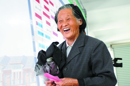 嘉善县姚庄镇农村新社区农户抽签选房现场,一位农妇抽到了满意的房子喜笑颜开。通讯员 胡凌翔 薛俊一 徐雄熊 摄