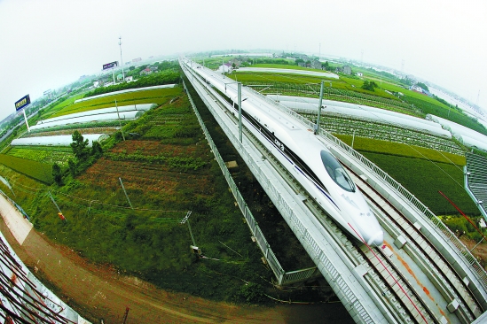 9月28日,记者在嘉兴嘉善南站前方约500米处记录下沪杭高铁以时速416.6公里疾驰而过的景象。