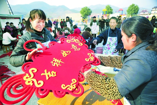 12月21日,东阳市画水镇举行“中国结编织技能大比武”,来自各行政村的100多名参赛选手参加围巾勾花、12米穿金线等20个项目的编织技能比武。