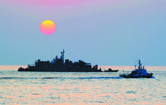 12月22日,两艘韩国船只在延坪岛附近海域行驶。 新华社发