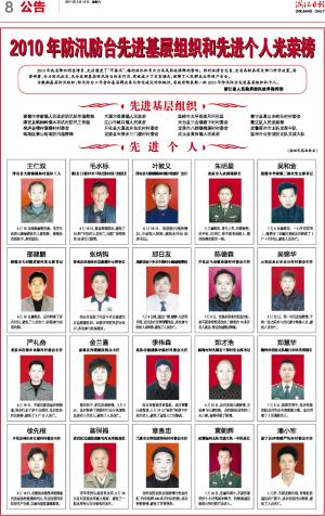 2010年防汛防台先进基层组织和先进个人光荣榜