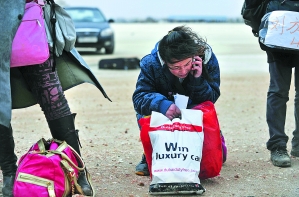| 2月25日,在利比亚班加西港,一名准备撤离的中国女孩给家人打电话。新华社记者 于洋 摄 |