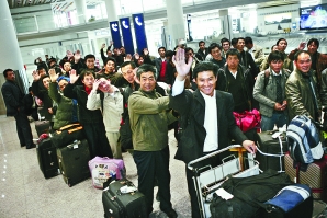 | 2月27日,从希腊克里特岛乘包机回国的中国同胞抵达首都国际机场。新华社发 |
