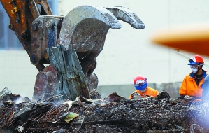 | 营救人员在CTV大楼残骸搜救幸存者。 新华社发 |