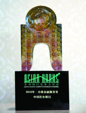 目前,民生银行杭州分行中小企业贷款余额已突破100亿元,成为省内银行界中小企业贷款增速最快的银行之一,并获评省小企业金融服务先进单位,同时在中国人民银行杭州中心支行组织的浙江省中小企业信贷政策导向效果评估活动中获评综合等次“优”级。