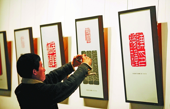 双休日,不少市民来到浙江美术馆学习篆刻,并参观西泠八家篆刻展览。魏志阳 摄