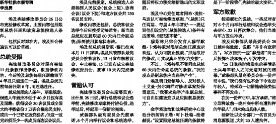 埃及宪法修改委员会26日公布宪法修改草案,主要内容包括限制总统任期和放宽总统候选人条件。