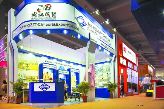 由我省原三大省级外贸公司合并组成的省国贸集团是浙江当之无愧的外贸“航母级”企业。图为该集团在广交会上的品牌展位。