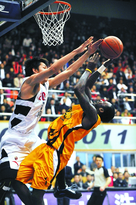 | 3月25日,广厦明凯男篮球员拉塞尔(右)在进攻。 当日,在2010-2011赛季中国男子篮球职业联赛(CBA)季后赛首轮第二回合比赛中,广厦明凯男篮客场以99比100不敌东莞马可波罗队,总比分成1比1平。而浙江稠州银行队再输一场,客场以65比75不敌江苏国信地产队。 新华社发 |