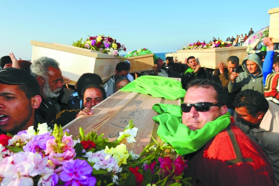 3月24日,在利比亚首都的黎波里,市民抬着即将下葬的棺椁走向一座公墓。利比亚官方当日宣布,近100名平民在西方联军空袭中丧生。 新华社记者 杨光 摄