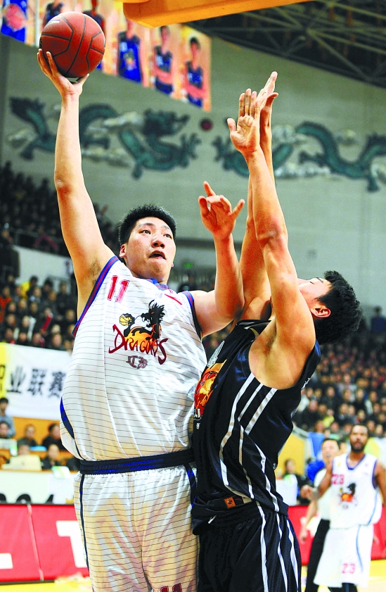 江苏队球员唐正东(右)在比赛中投篮。新华社发