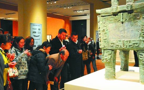 3月27日,参观者在国家博物馆青铜器大厅参观“后母戊”青铜鼎。当日,中国国家博物馆开始免费向公众开放。 新华社发