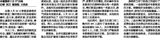 本报3月23日曾报道路桥区峰江街道上陶村部分村民血铅超标事件,连日来,路桥区委、区政府积极认真做好血铅超标人员诊治、事件调查、相关责任追究等一系列后续工作,彻查这一事件。