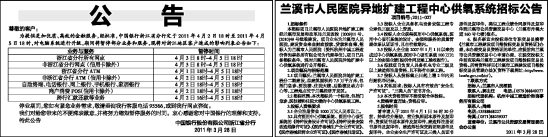 兰溪市人民医院异地扩建工程中心供氧系统招标公告