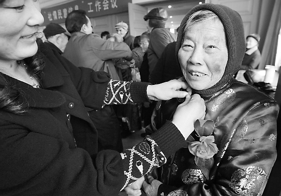 日前,嘉善县干窑村为63对金婚夫妇举办金婚庆典,老人们穿上唐装,开心地拍摄金婚照片,并从村干部手中接过红包、蛋糕等礼物。