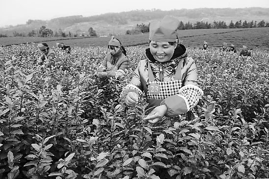 新昌县大市聚茶树良种繁育示范场,48名戴着红帽子的采茶能手把碧绿的茶园点缀得妩媚动人,近日,这里举行了一场名茶采摘大赛。