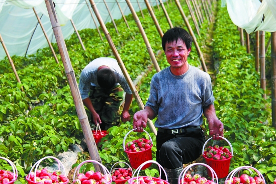 武义县下杨一村刘星海承包了26亩土地种植有机草莓,时有游客上门采摘,省心又赚钱。记者 陈洪标 报道组 沈月丰 通讯员 张志翔 摄