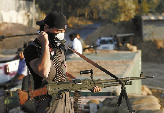5月28日,在利比亚城市米苏拉塔,一名反政府武装人员在战斗前线就位待命。 新华社记者 纳赛尔 摄