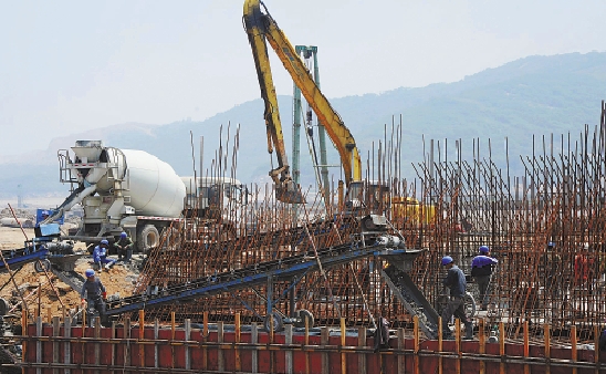 5月29日下午,黄金湾调蓄水库主坝基础浇注完成。该水库是舟山大陆引水二期工程的重要组成部分,主坝采用空箱扶壁式结构,坝顶长1265米。 通讯员 姚峰 摄