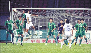 5月29日晚,中超第九轮杭州绿城1比2负天津康师傅。 陈熙春 潘良干 摄
