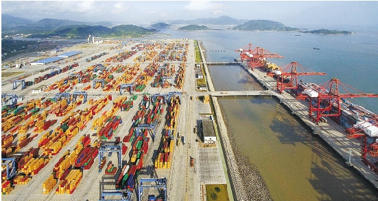 2010年,浙江全省实现物流业增加值2550亿元。图为繁忙的宁波—舟山港。
