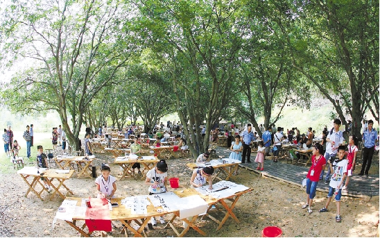 7月31日,以“纪念辛亥革命100周年”为主题的绍兴少儿现场书法大赛,在绍兴县大香林景区的千年古桂树群下开赛。100名青少年书法爱好者挥毫泼墨,展示出书法之乡的深厚底蕴。 绍兴县报记者 高洁 摄