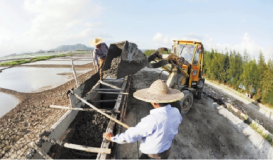 7月29日,施工人员正在加固温岭市城南镇殿嘴头海塘。从2008年开始,温岭市投入1.38亿元,对八一塘、殿嘴头塘、观岙塘等16条一线海塘进行全面加固,目前已经完成近一半的加固工程。 温岭日报记者 吴鹏飞 摄