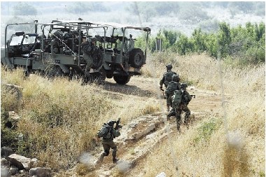 8月1日,以色列士兵在以色列和黎巴嫩边境地区巡逻。黎巴嫩安全部门有关人士1日向新华社记者证实,黎巴嫩和以色列军队士兵当天早些时候在两国边境地区发生交火,所幸没有造成人员伤亡。 新华社发