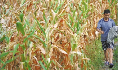 8月1日,贵州干旱重灾区黔东南州三穗县桐林镇棒相村一村民从已绝收的玉米地旁经过。 新华社记者 欧东衢 摄