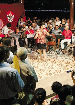 8月1日晚,建德市老年体协文体队和新安江新声婺剧坐唱队在江滨公园为纳凉的市民奉献了一台婺剧专场纳凉晚会。