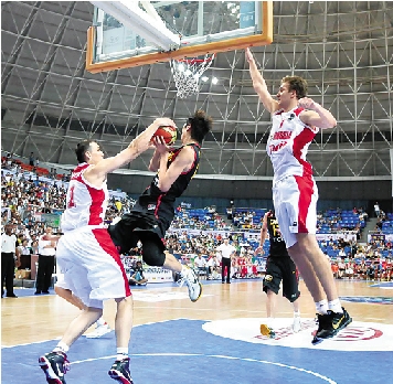 8月2日,中国队迎来了斯杯(海宁站)的第二个对手俄罗斯男篮。中国队状态不佳以52比67输给了对手,遭两连败。本场比赛中国队的半场和全场得分都创新低。 通讯员 王飞庆 摄