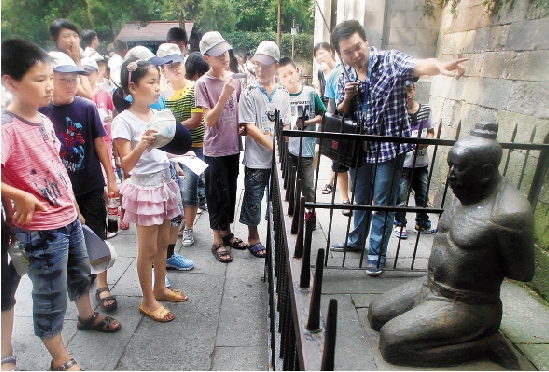 8月2日,青田县万阜乡校留守孩子坐着进城“班车”来到杭州,游玩了岳王庙景区,圆了看西湖的梦想。 本报记者 林云龙 摄