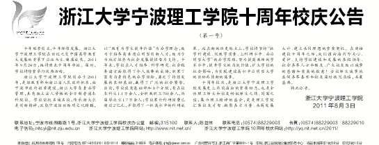电子信箱:nitcyl@nit.zju.edu.cn 浙江大学宁波理工学院网站:http://www.nit.net.cn/ 浙江大学宁波理工学院10周年校庆网站:http:/yq.nit.net.cn/2011/