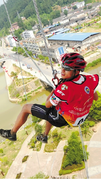 8月5日,桂林远途队选手刘斯韵在“楼降”项目的比赛中。当日,第五届全国山地户外运动(泰宁)锦标赛在福建泰宁落幕。 新华社发