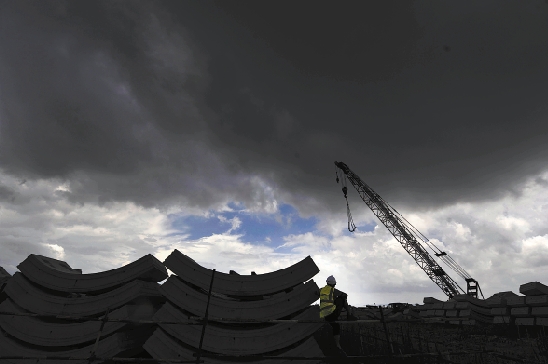 8月5日,三门湾上空乌云翻滚,风力逐渐增强。当地有关部门要求港口、码头停止吊装作业,工人撤离。