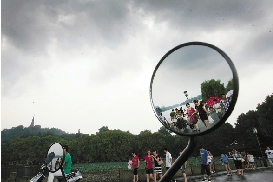 8月5日下午,杭州西湖上空乌云密布。受强台风“梅花”影响,杭州将出现暴雨和局部大暴雨天气。