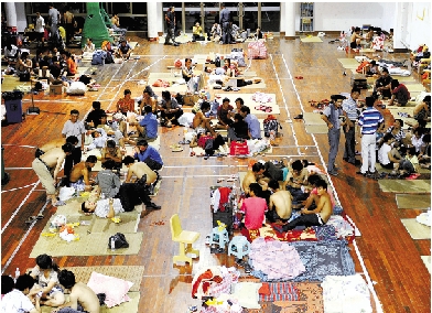 昨晚,舟山普陀区东港中学体育馆和食堂安置约1000名农民工。