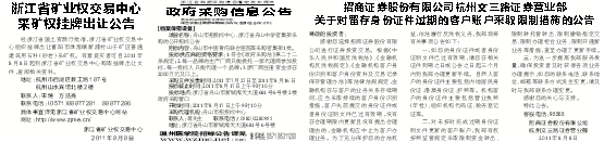 经浙江省国土资源厅批准,浙江省矿业权交易中心组织挂牌出让富阳市渌渚镇新浦村山子矿区普通建筑用石料(砂岩)采矿权。有意竞买者可自2011年8月8日起到浙江省矿业权交易中心购取挂牌出让文件,查阅相关资料。