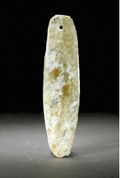 方杰的判断很准确,蔡辰手上的确还有一件至宝。等方杰再次叩门而入时,蔡辰似乎知道了他的意思,一声不响地拿出了另外一件玉器。方杰一看,这件玉器长约10cm,形如织梭,品相完整,古沁斑斓。