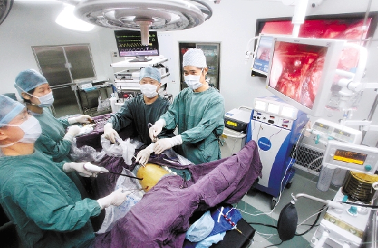 8月10日,浙医二院OR1一体化现代手术室,通过网络和全球多家医院的专家连线,同时为病人会诊治疗。