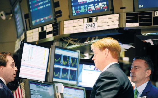 8月10日,纽约股市三大股指收盘跌幅均超过4%。图为一脸无奈的交易员。 新华社记者 邓坚 摄