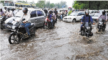 8月12日,在印度首都新德里,车辆在雨水淹没的道路上行驶。当日,新德里突降暴雨,多处交通受到影响。 新华社发