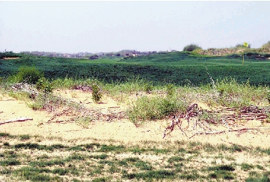 在沙漠高尔夫球场内,沙地和翠绿的草坪形成了鲜明对比。 新华社发