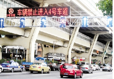 近日,上海闸北区共和新路临汾路路口设置的“综合待行区”及增设的LED信号屏正式投入使用,以缓解交通拥堵。 新华社发