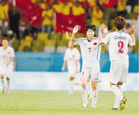 老将毕妍(右二)仍是中国女足的顶梁柱。 新华社发
