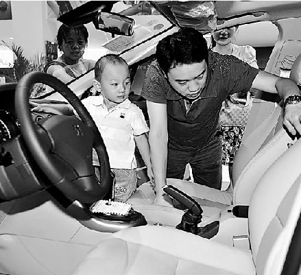 一家三口,乘着夜色精挑细选的场景,在很多4S店都可以看到
