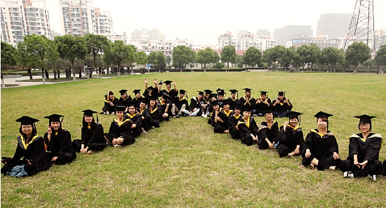 浙江海洋学院B07数学班的同学们在草地上摆出圆周率“π”的样子。 视野网供图