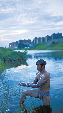 游了两圈,陈师傅上来后边打肥皂边与人闲聊。